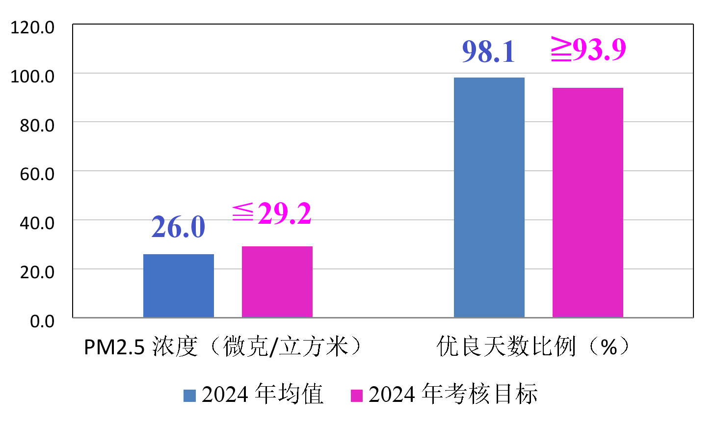 图3 2024年玉林市PM2.5及优良天数比例与考核目标比对