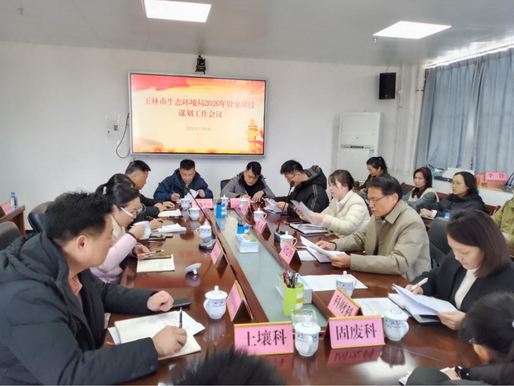 为精准把握上级生态环境资金、超长期特别国债申报导向,高质量推进项目谋划储备工作,近日,玉林市生态环境局组织召开全市生态环境系统2026年资金项目谋划专题会。局领导梁恺华同志、局机关各科室负责人、各直属单位分管负责人、各县(市、区)生态环境部门相关负责人及业务骨干参会。会议特别邀请中国环境科学研究院水、大气、土壤及重金属等领域专家通过线上形式提供答疑帮扶与专业指导。