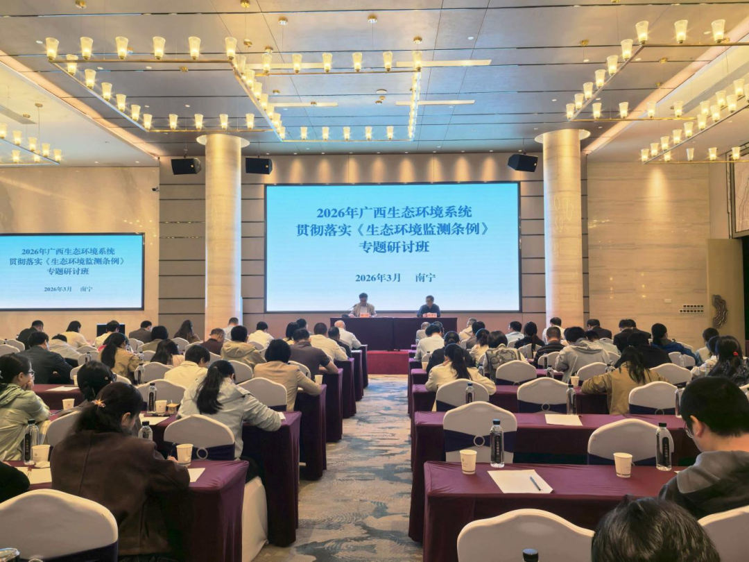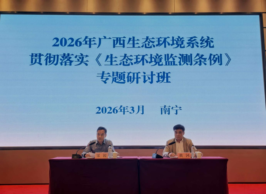 3月19日至20日,自治区生态环境厅在南宁市举办2026年广西生态环境系统贯彻落实《生态环境监测条例》(以下简称《条例》)专题研讨班,自治区生态环境厅二级巡视员邹锐出席开班仪式并讲话,全区生态环境系统共计130余名学员参训。